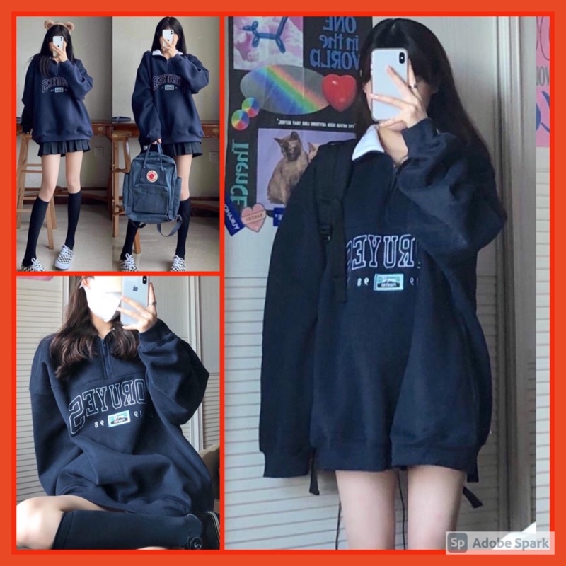 Freeship- Áo Nỉ Zip Foruyfs Nữ [FREESHIP] 🌸 Sweater cao cổ dài tay bồng, thun hoodie form rộng cá tính Ulzzang 🌸 mua tại đây