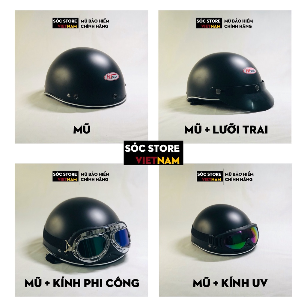 Freeship- Mũ bảo hiểm nửa đầu chính hãng Sóc Store Vietnam nhiều màu kèm kính UV, kính phi công, nón bảo hiểm 1 phần 2 freesize mua tại đây